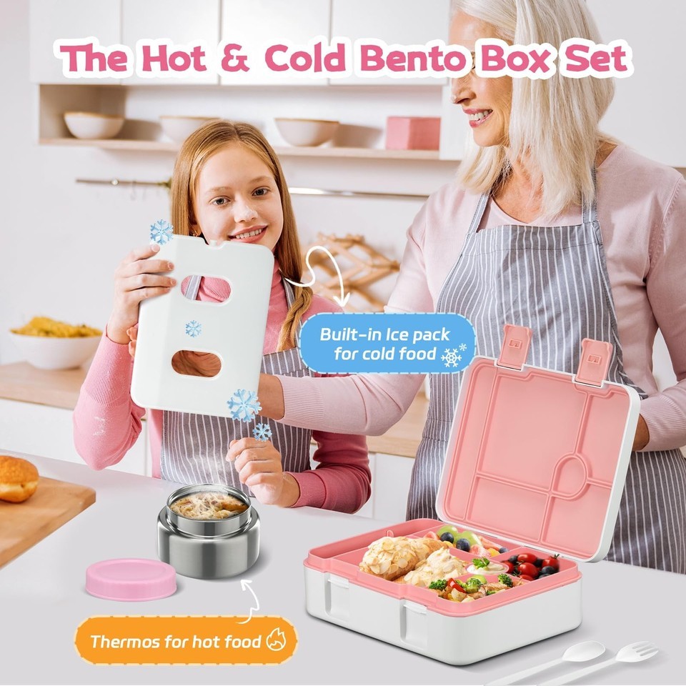 BEAQUEE Bento Lunch Box Kids and 9oz Soup Thermo – 5.5-Cup Leakproof Kids Bento