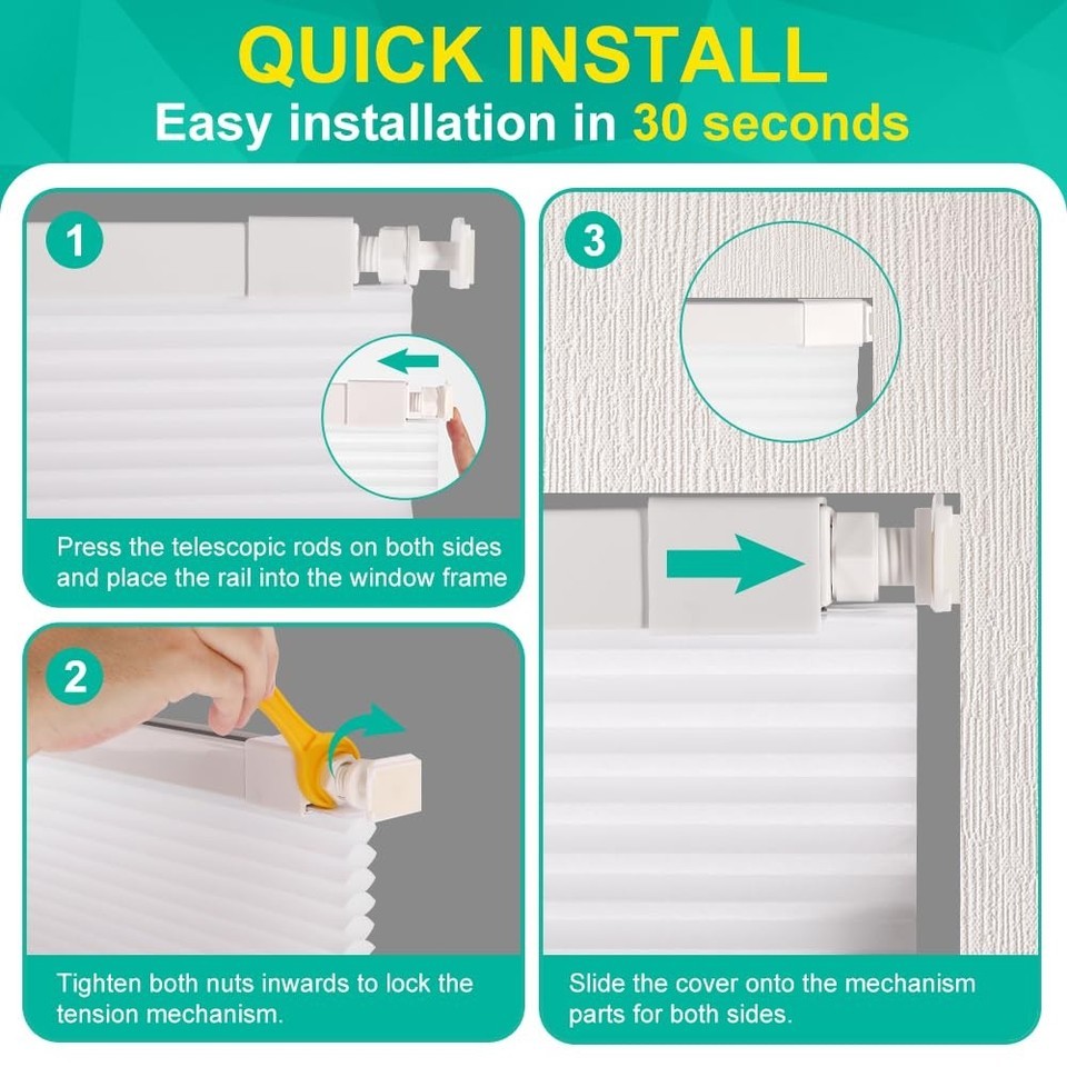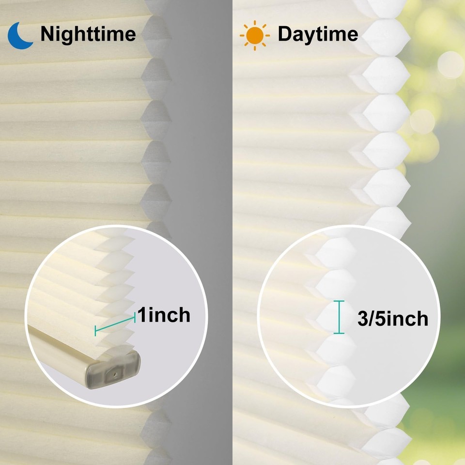 FabuBlinds Cordless Cellular Shades, No Drill No Tools Light Filtering Honeycomb