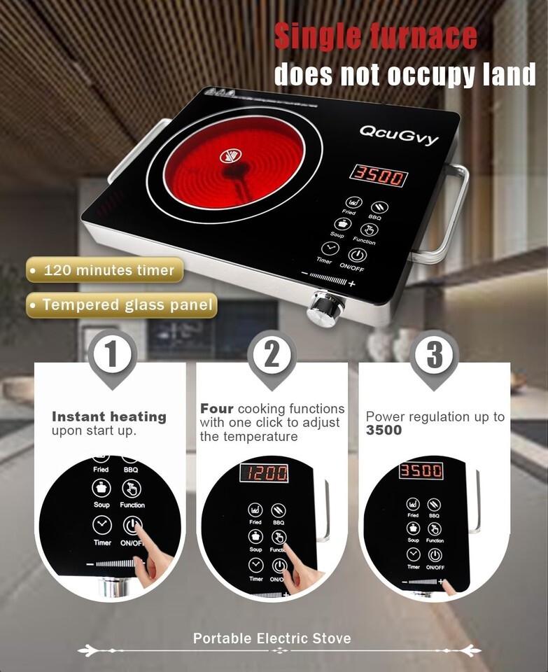 Portable Infrared Burner 3500 Electri Burner with 3 Hours Timer-Electric Hot Pla