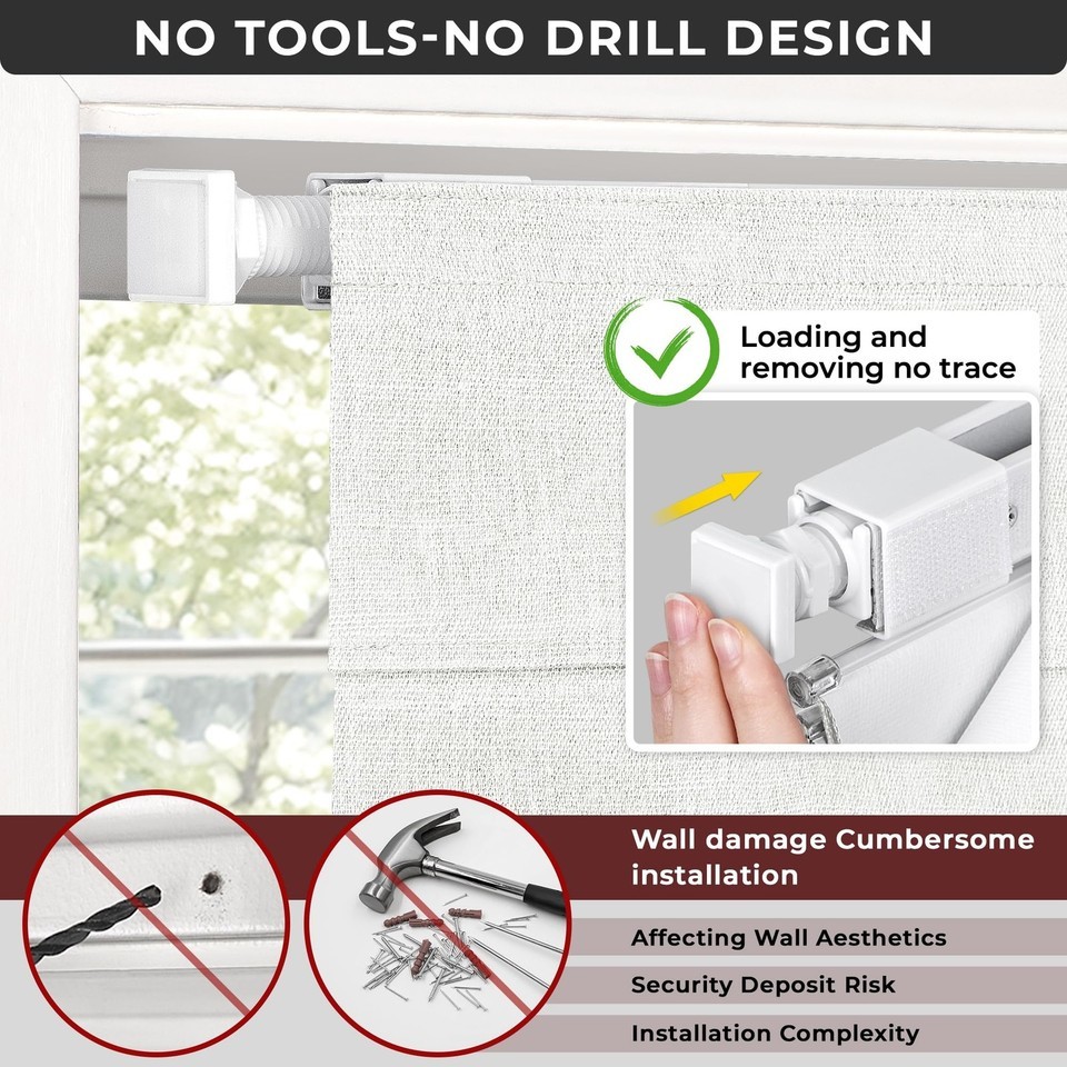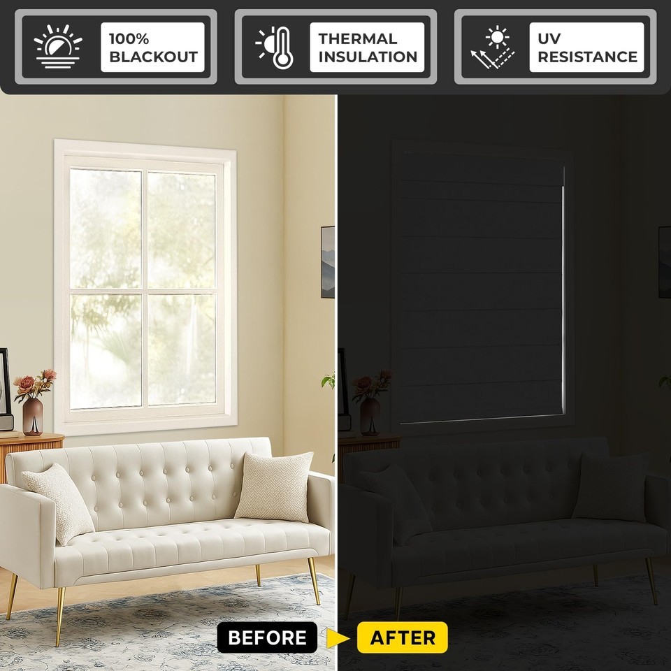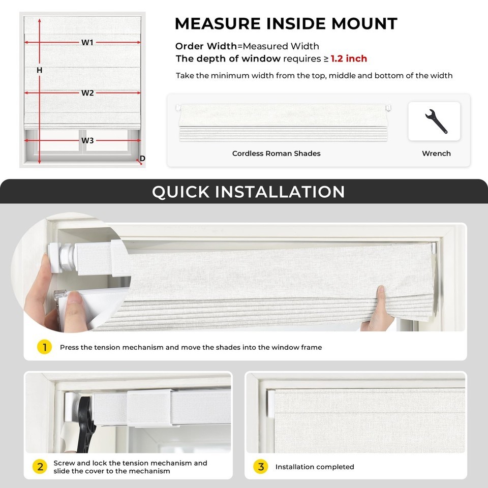 UNISHADES 100% Blackout No Tools No Drill Cordless Roman Shades for Windows, Siz