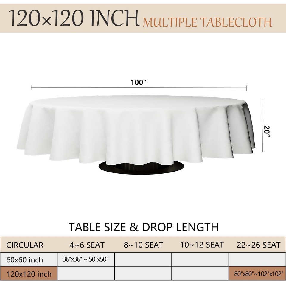 Winwingo 120x120 Table Cloth - 6 Pack Round and similar items