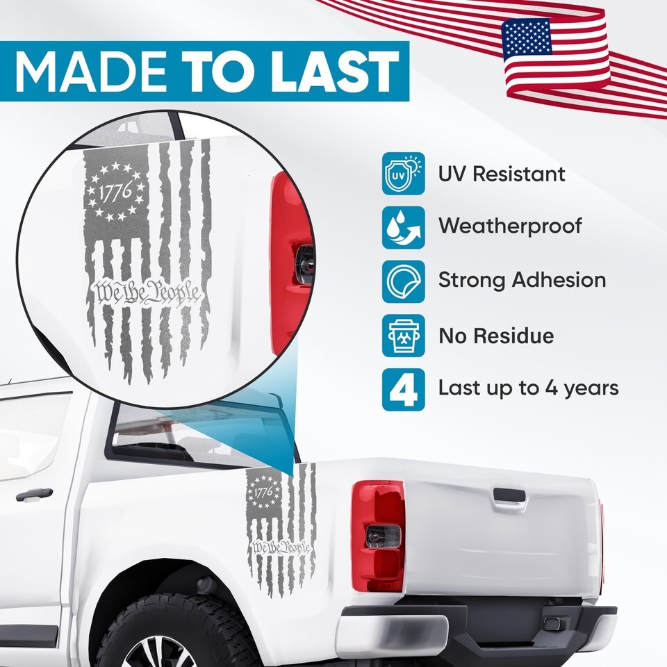 GRITKULTURE We The People Distressed American Flag Vinyl Decal For Trucks Cars