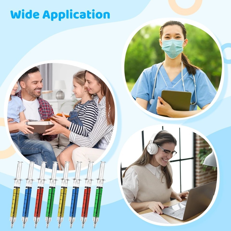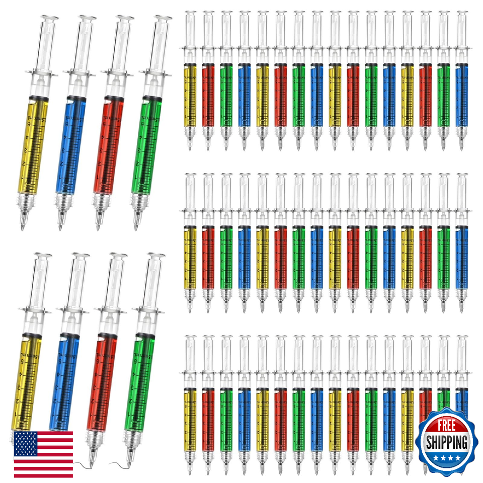 Tideme 100 Pcs Syringe Pens Bulk Retractable Fun Nurse Multi-Color Novelty