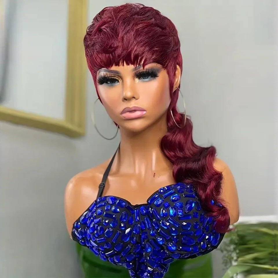 SAEIALL Mullet Wig for Black Women Human Hair Pixie Cut Wig Long Body Wave Mulle