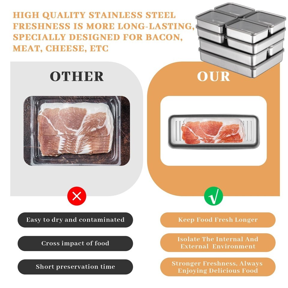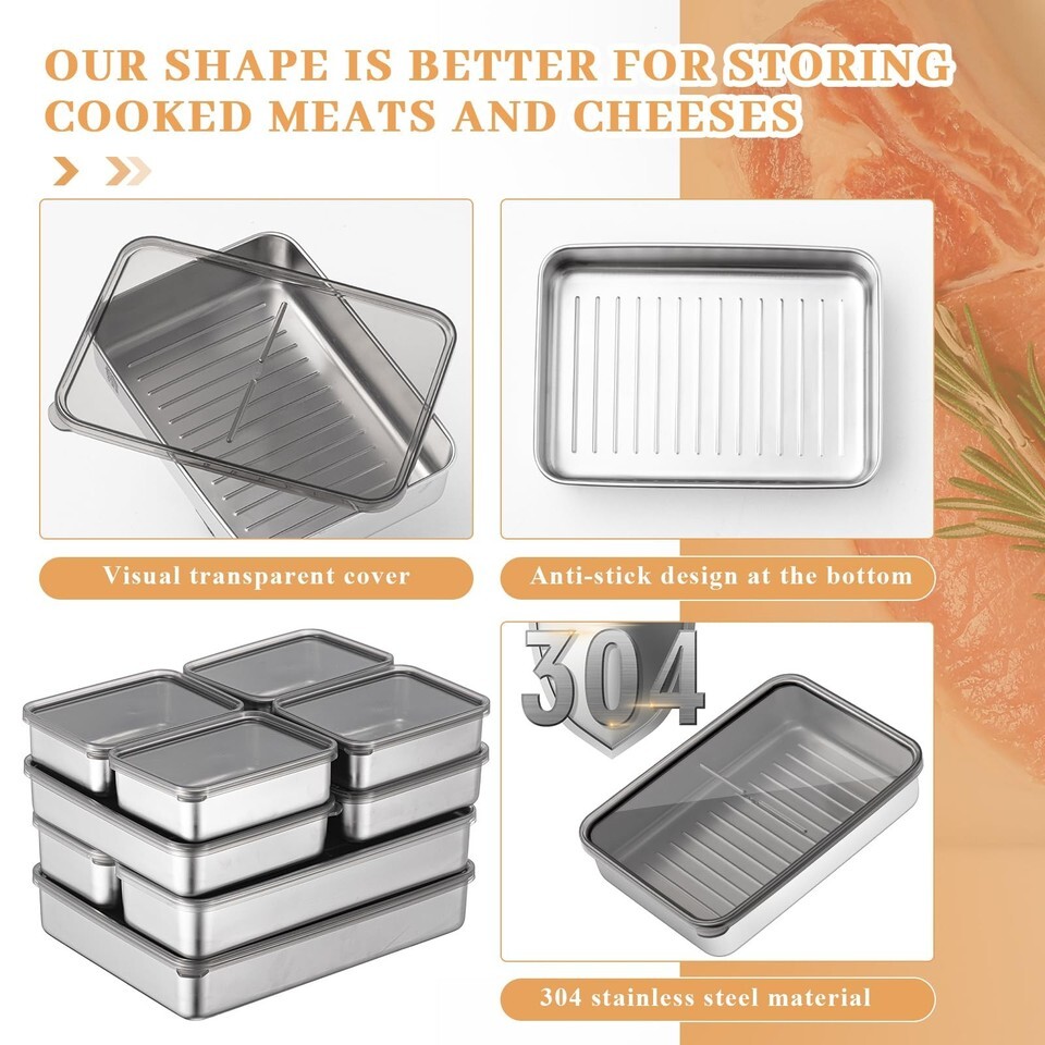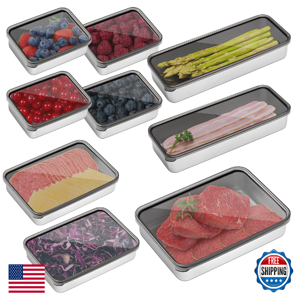 Hushee 9 Pack 304 Stainless Steel Bacon Cheese Container w/Lids for Refrigerator