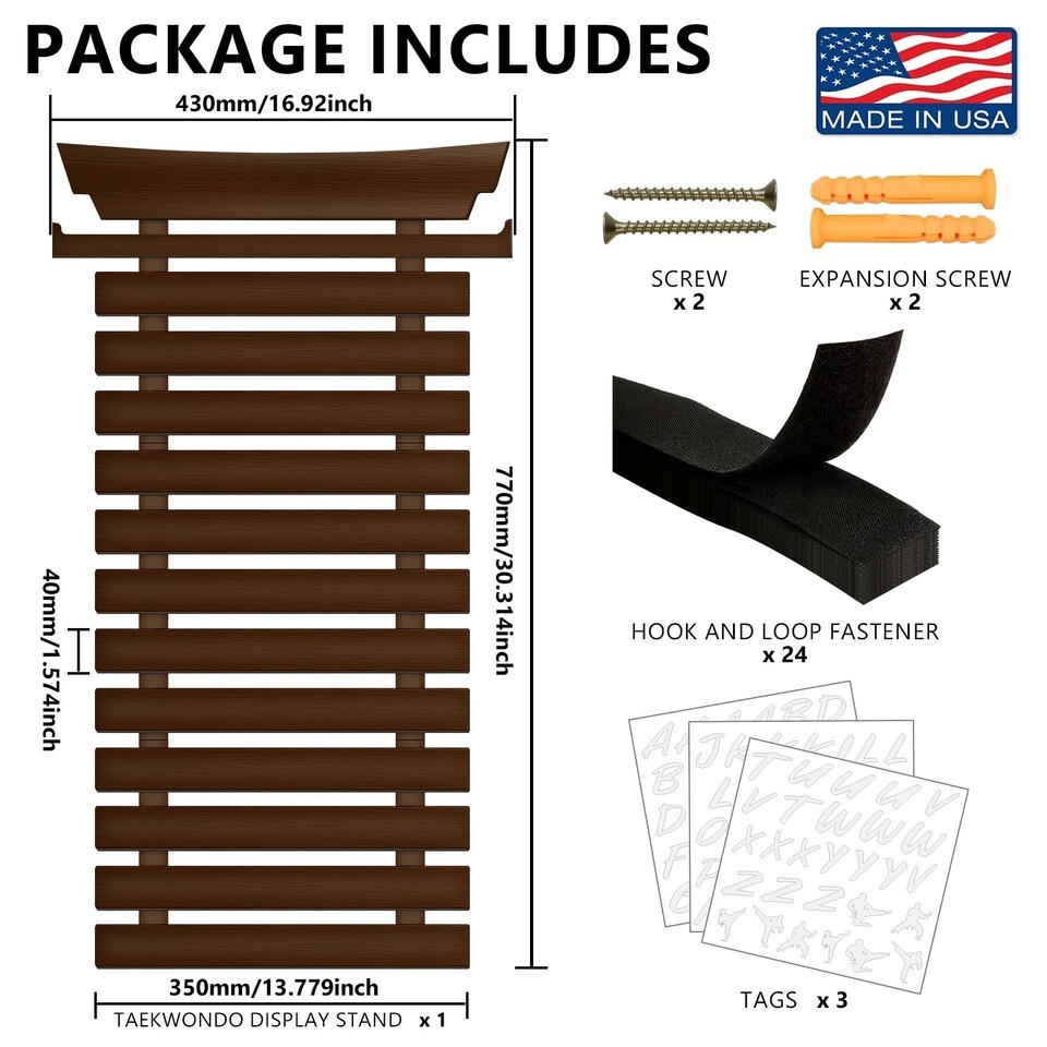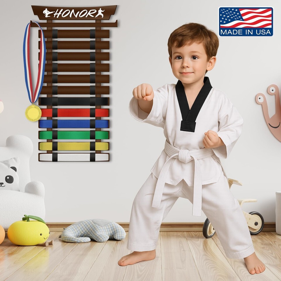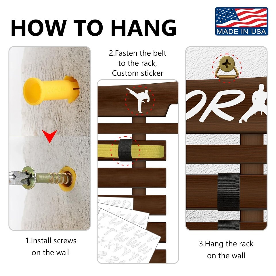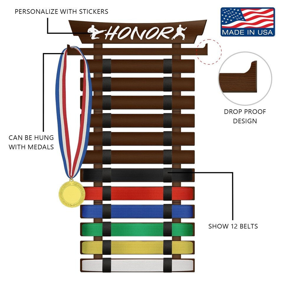 SD FACTORY 12 Belts Karate Belt Display Rack with Stickers Wall Mounted Taekwond