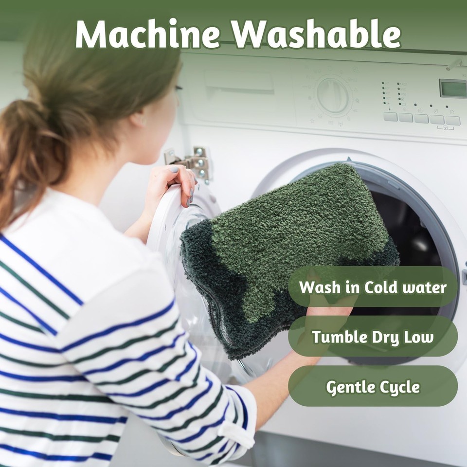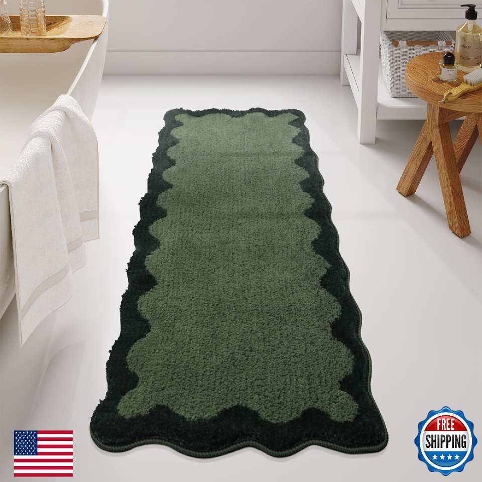 Uphome Bathroom Runner Rug, Green Large Water Absorbent Cute Bath Mat Non Slip W