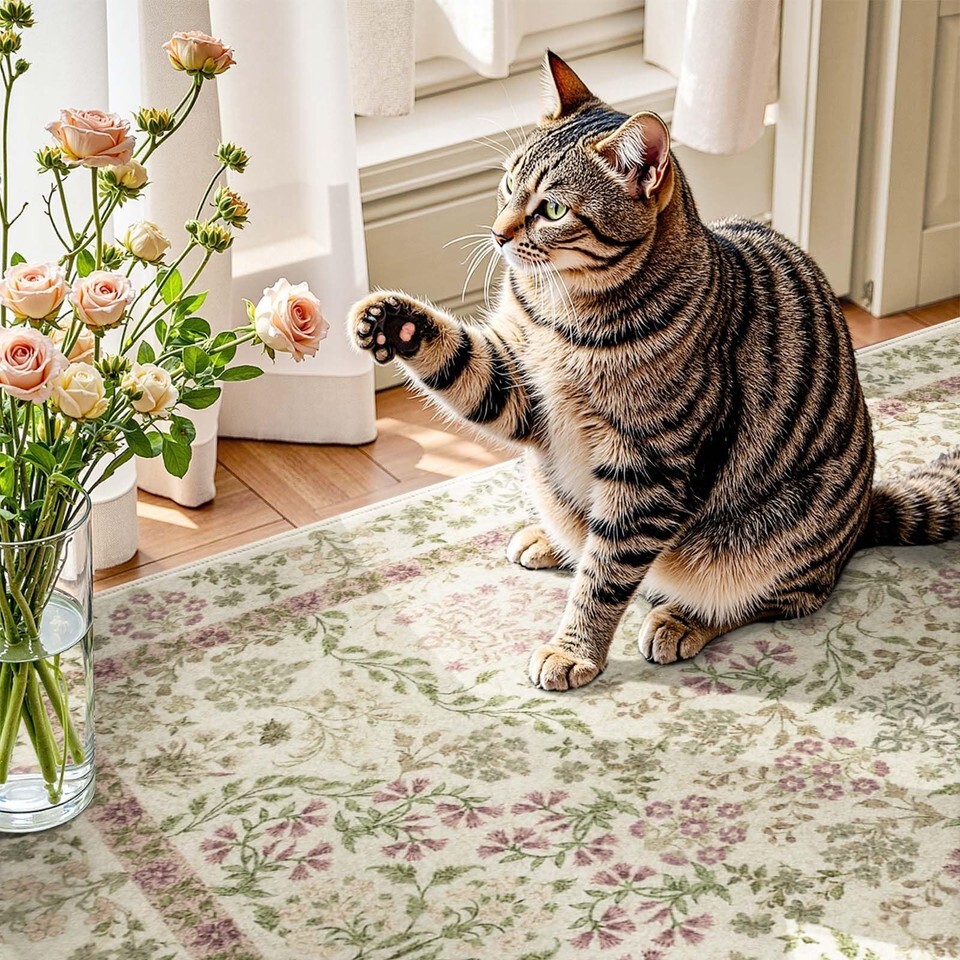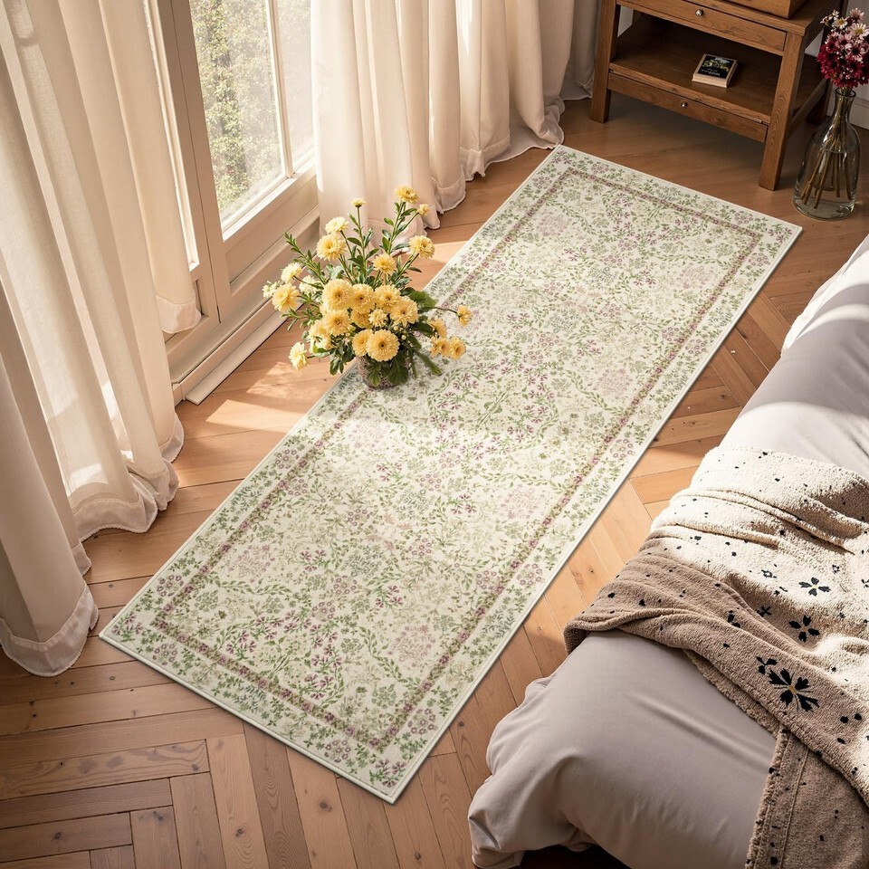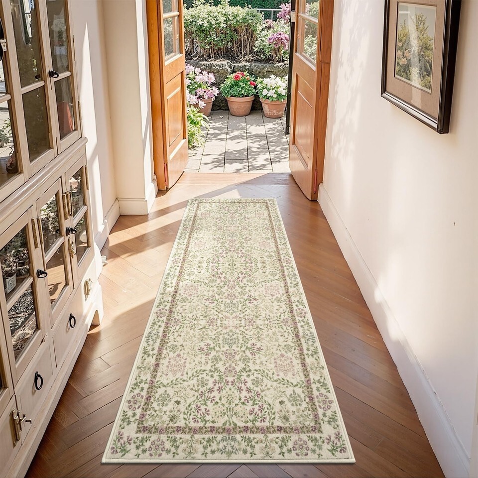 jinchan Zenith Floral Runner Rug 2x6 Washable Kitchen Runner Non-Slip Low-Pile S