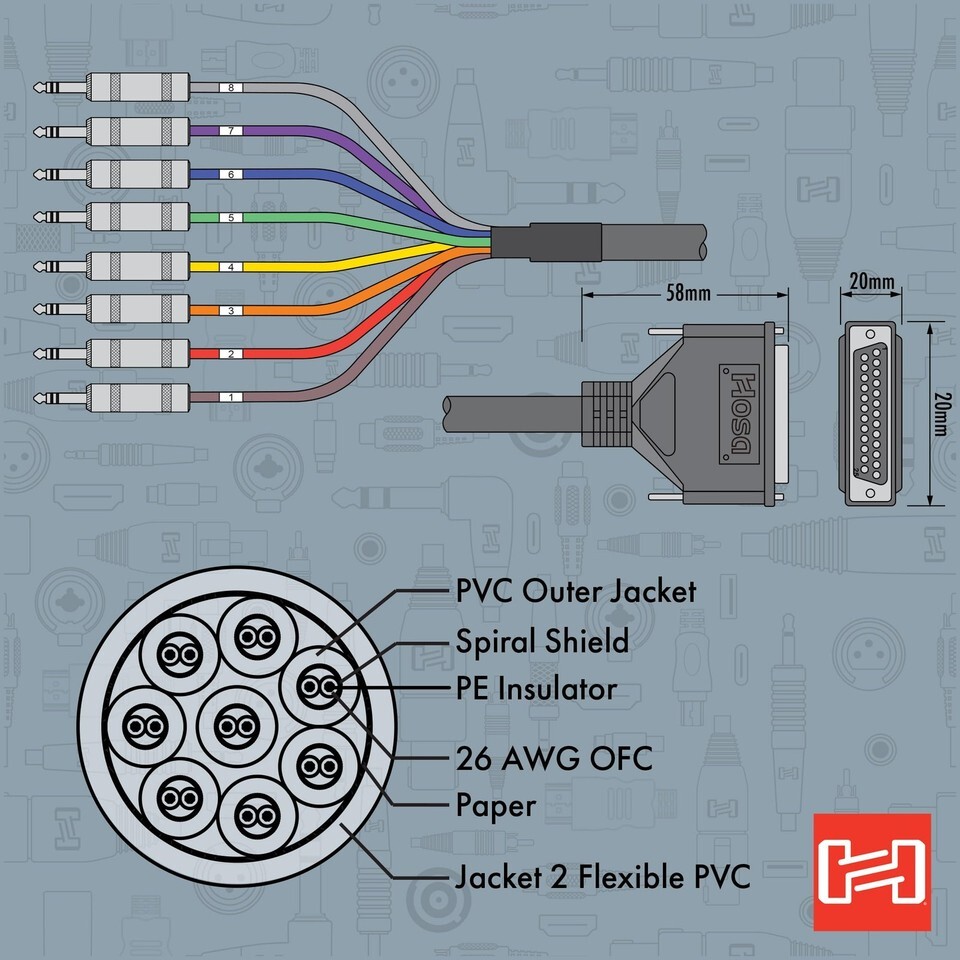 Hosa DTP-802 Balanced Snake, DB25 to 1/4" TRS, 6.6 Feet