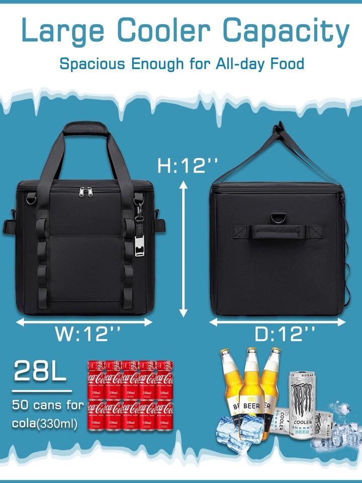 Insulated Soft Cooler Bag 28L Large Leakproof Ice Chest for Travel, Camping, Pic