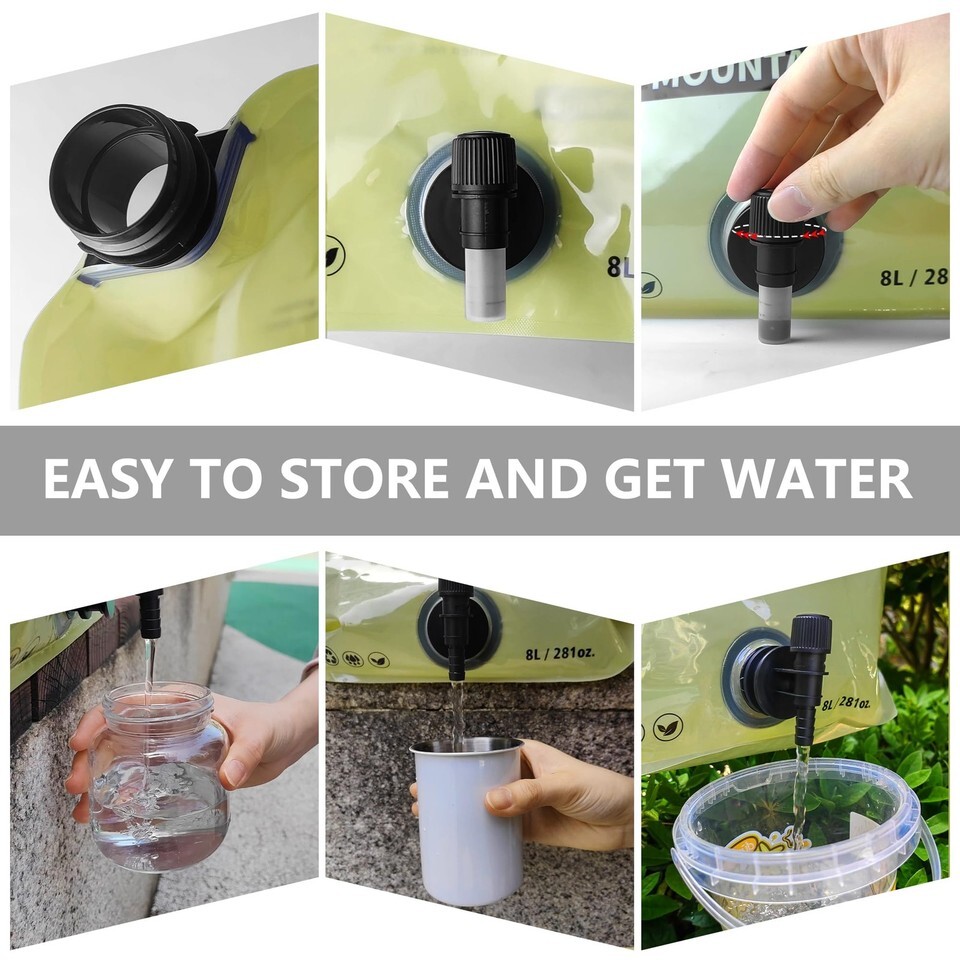 Collapsible 8L 2.1 Gal Water Storage Bag BPA-Free Portable Folding Jug w/ Spigot