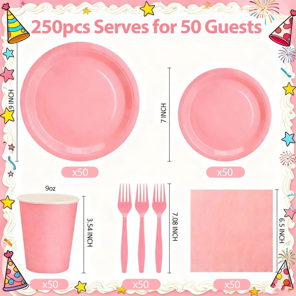 CENLBJ Pink Party Supplies: Plates, Napkins, Cups, Forks - Set for 50 Guests