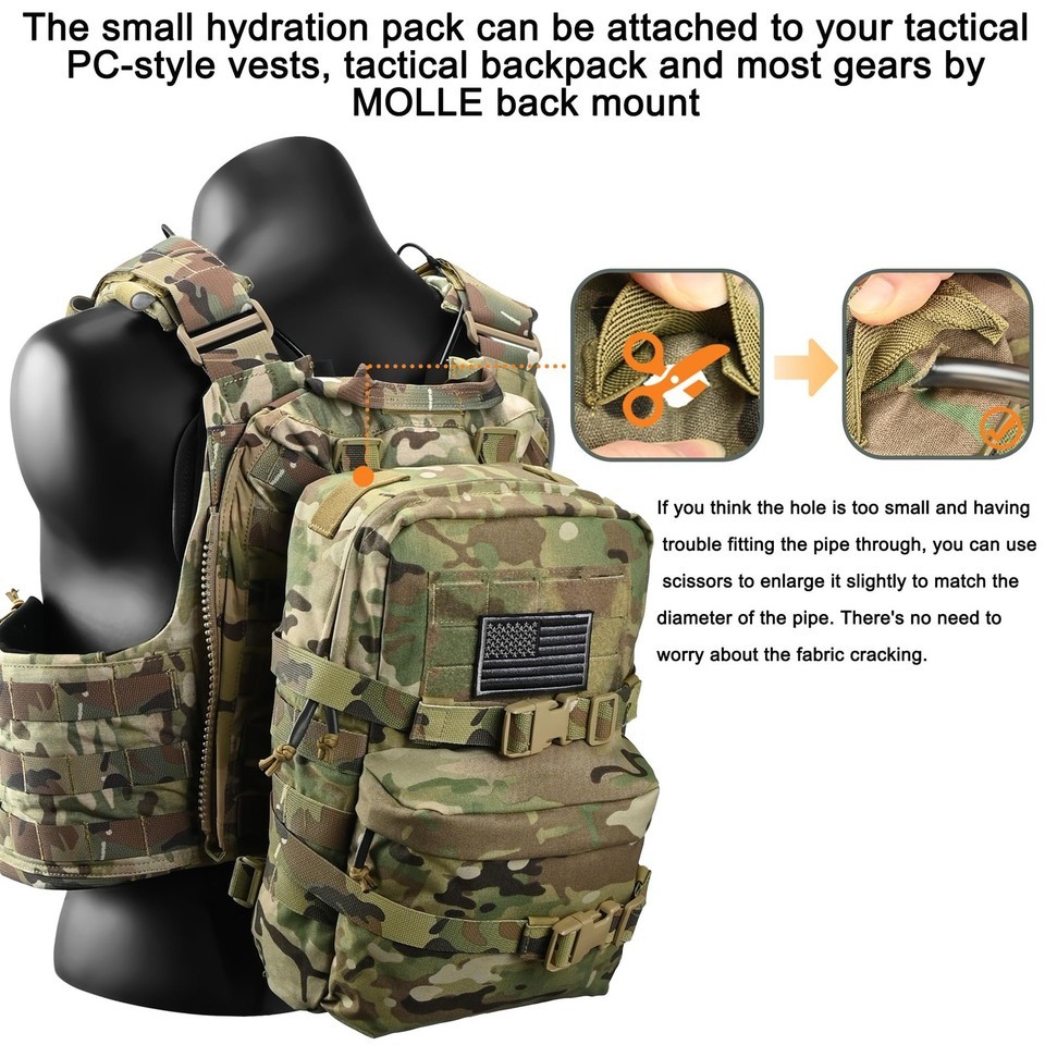 Tactical Mini Molle Hydration Pack Carrier US Flag Water Resistant Backpack