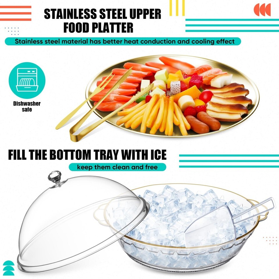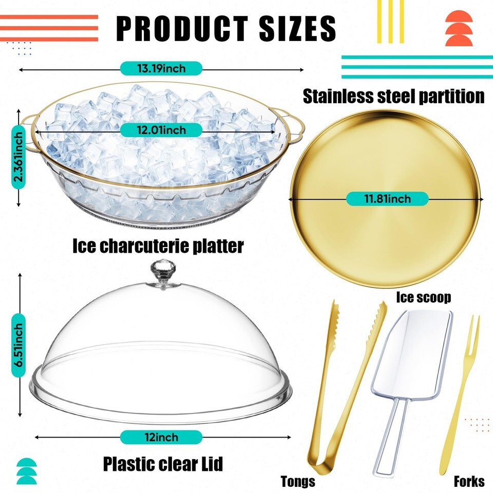 Baderke 11.8" Chilled Serving Tray for Parties with Compartments and lid Ice Chi