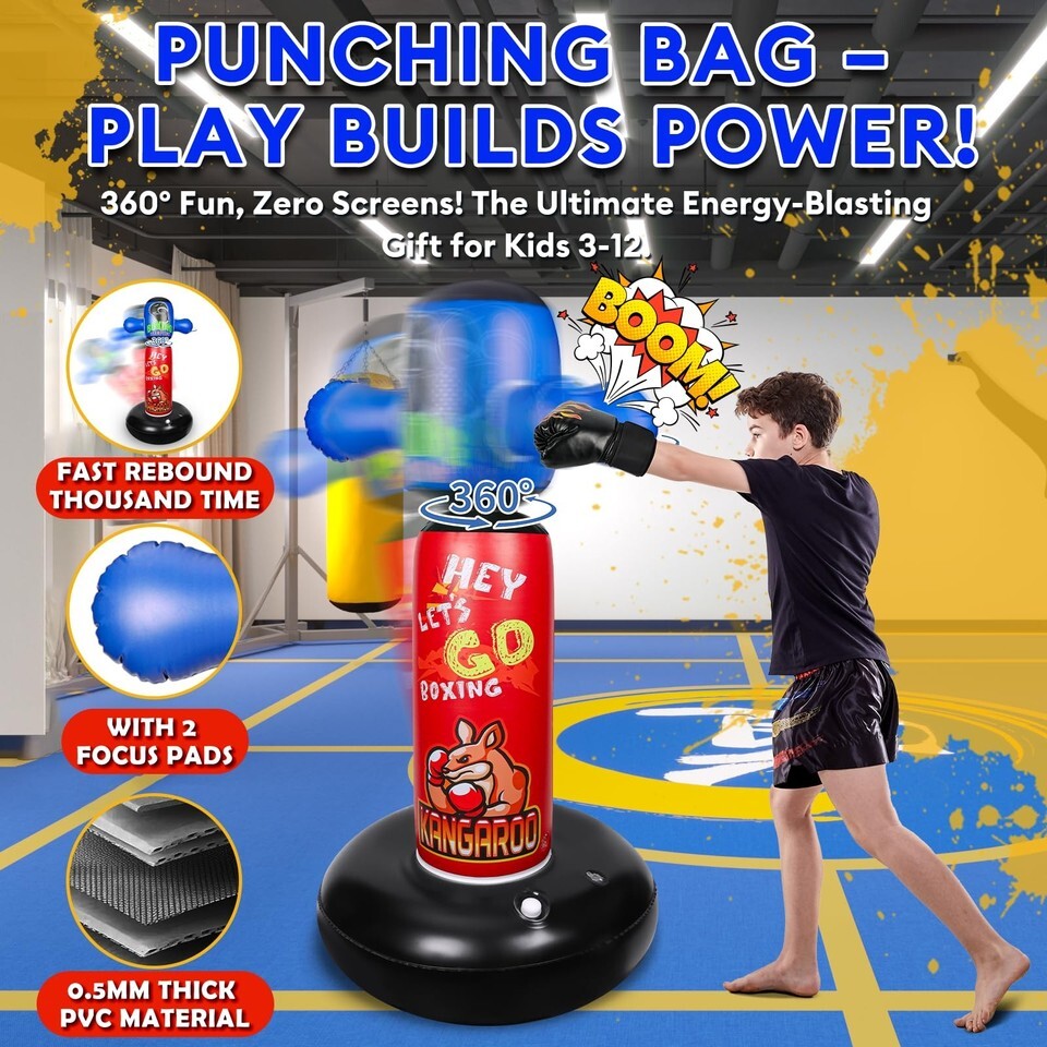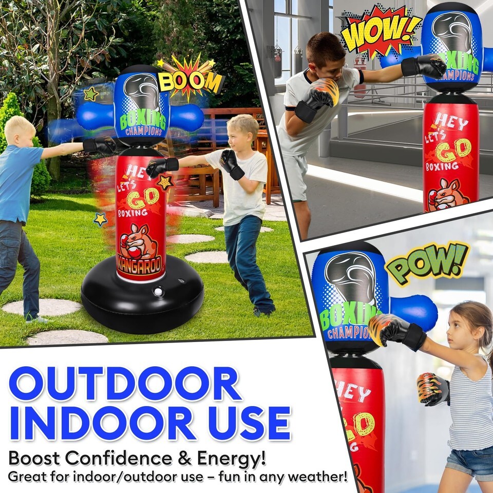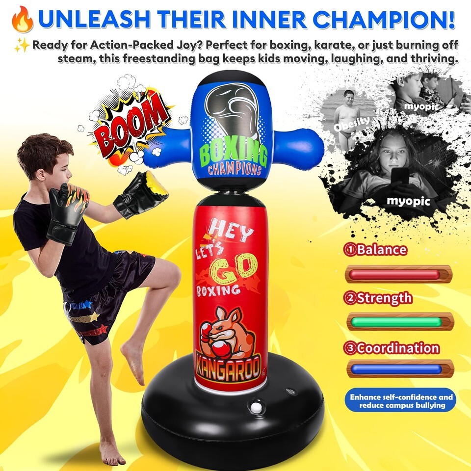 Punching Bag for Kids with 360° Rotating Head, Hyperzoo 63" Heavy-Duty Inflatabl