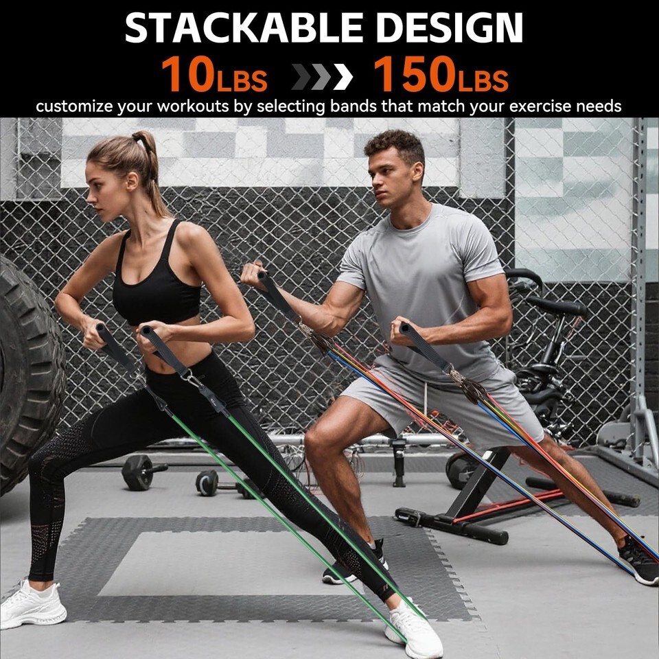 Resistance Bands Workouts Set for Men and Women with Handles - Heavy Duty 150lbs