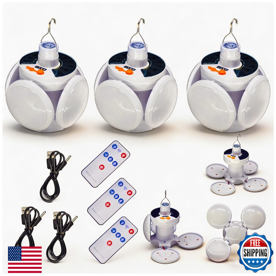 4000mAh 3 Pack Folding Solar Camping Lights Lantern Waterproof USB Collapsible L
