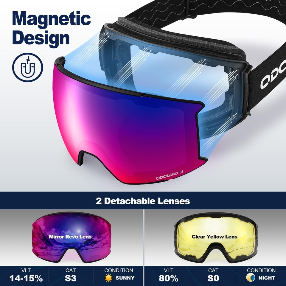 Odoland Ski Goggles Set with Detachable Lens, Interchangeable Lens, Anti-Fog UV