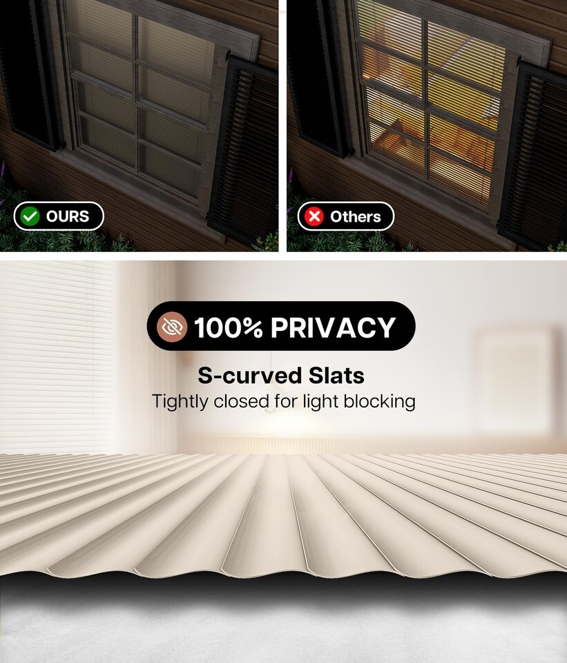 LazBlinds Cordless 1" Vinyl Mini Blinds, No-Drill, 100% Privacy S-Curve
