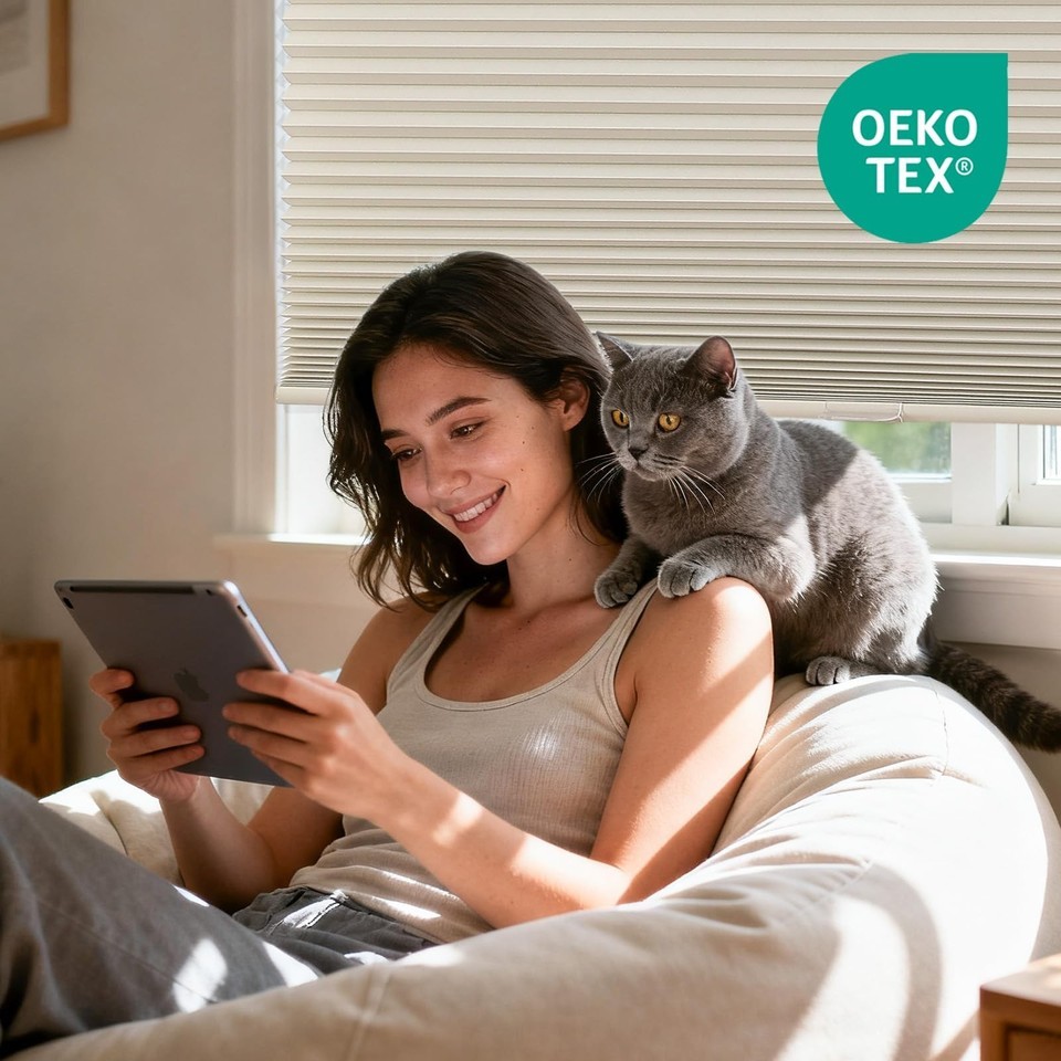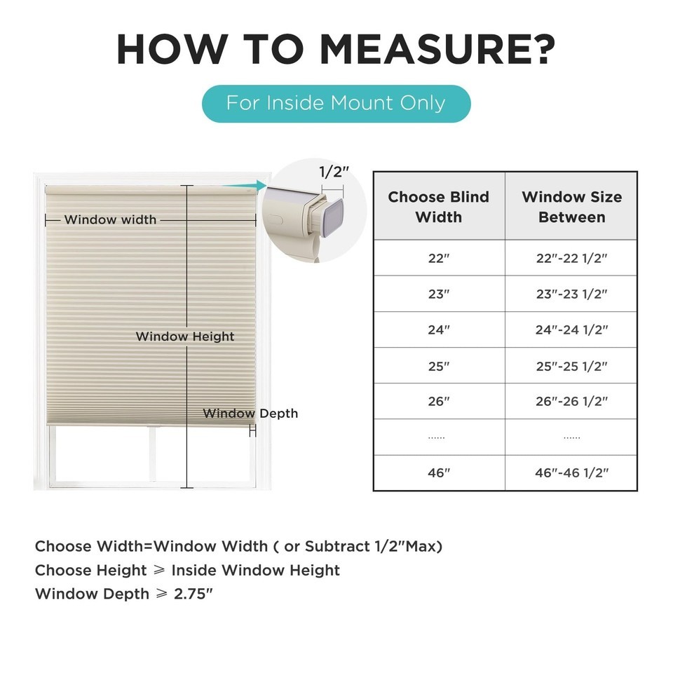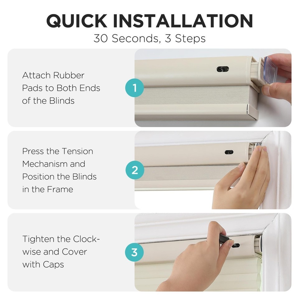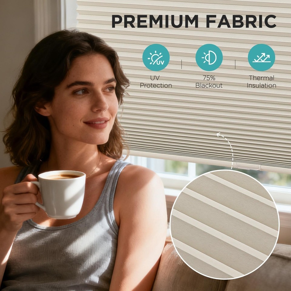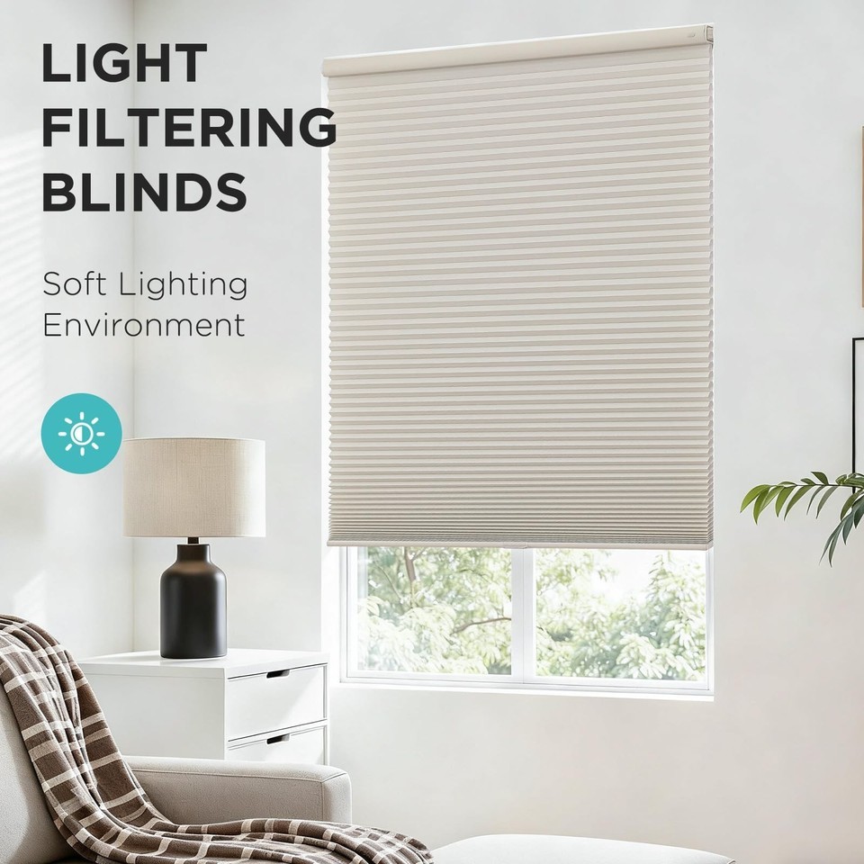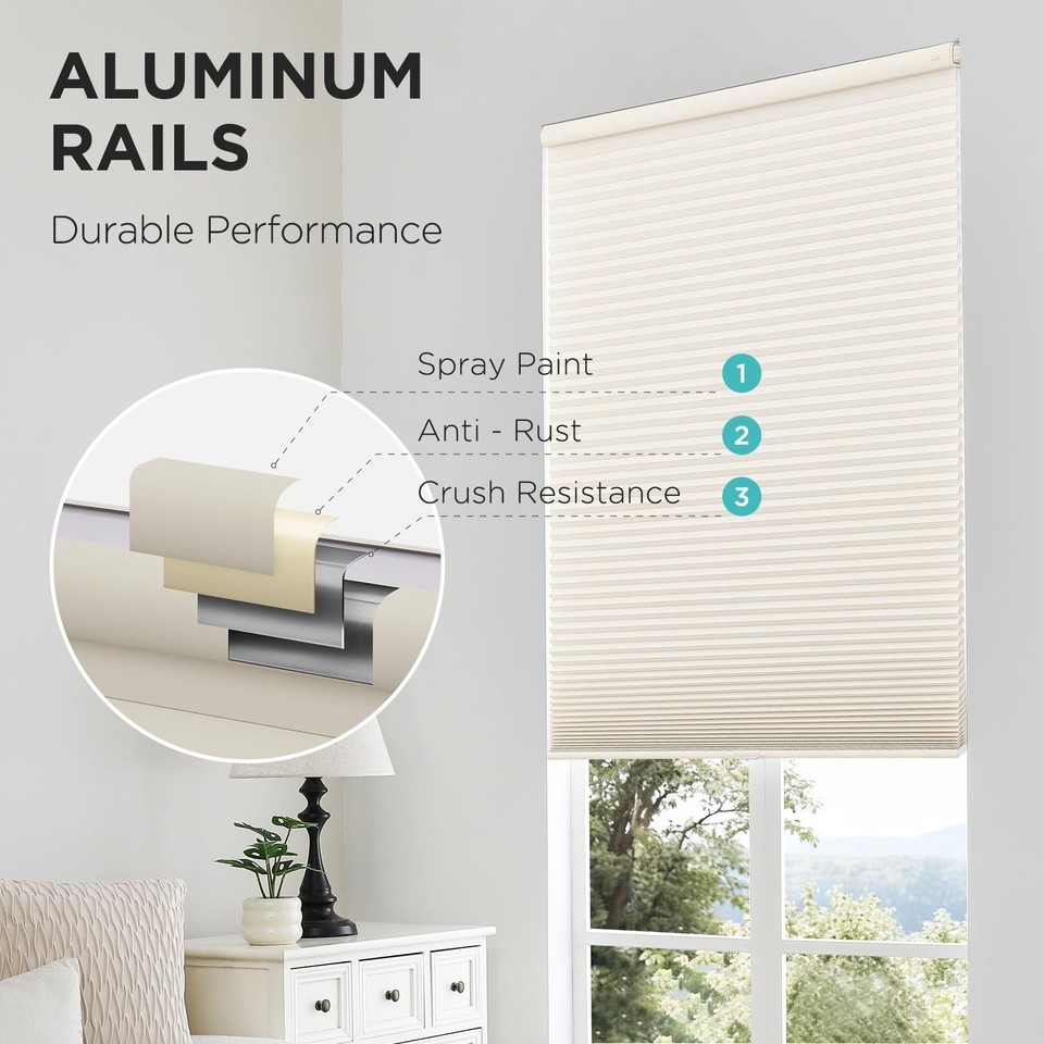 Joydeco No Tools No Drill Cordless Cellular Shades, Light Filtering Honeycomb Bl