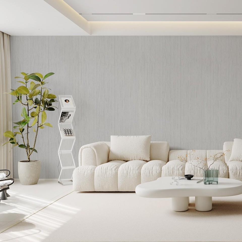 Biyoee Grey Grasscloth Peel & Stick Wallpaper Textured Contact Paper 52.4 sqft