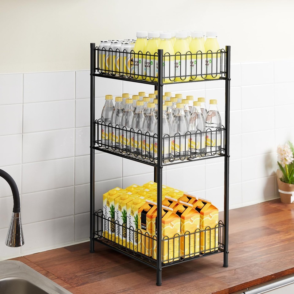 OYEAL 3-Tier Metal Water Bottle & Soda Can Organizer Rack - Vertical Storage