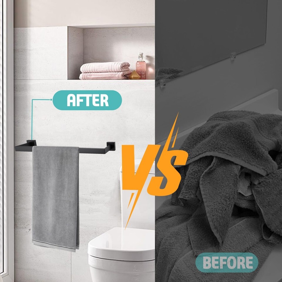 LANC 2pk 20" Matte Black SUS 304 Stainless Steel Wall Mount Towel Bars Kitchen