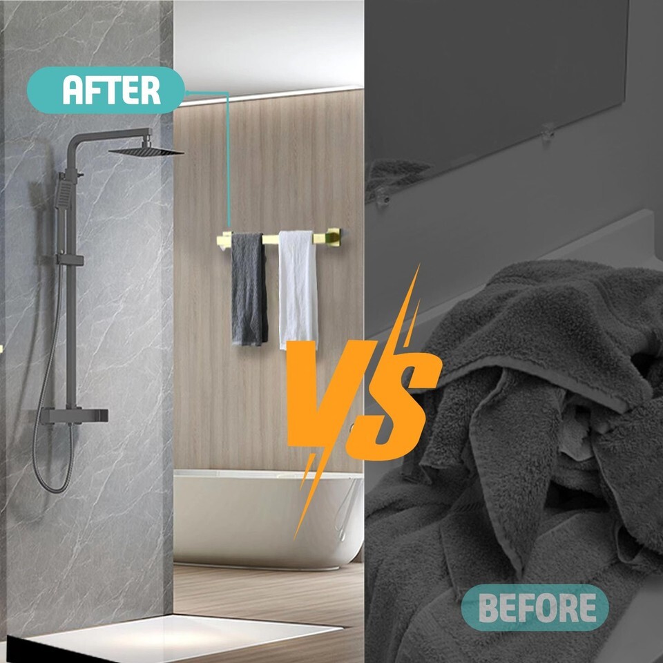LANC 16" Gold Towel Bar, Wall Mounted, Brushed Gold, SUS 304 Stainless Steel