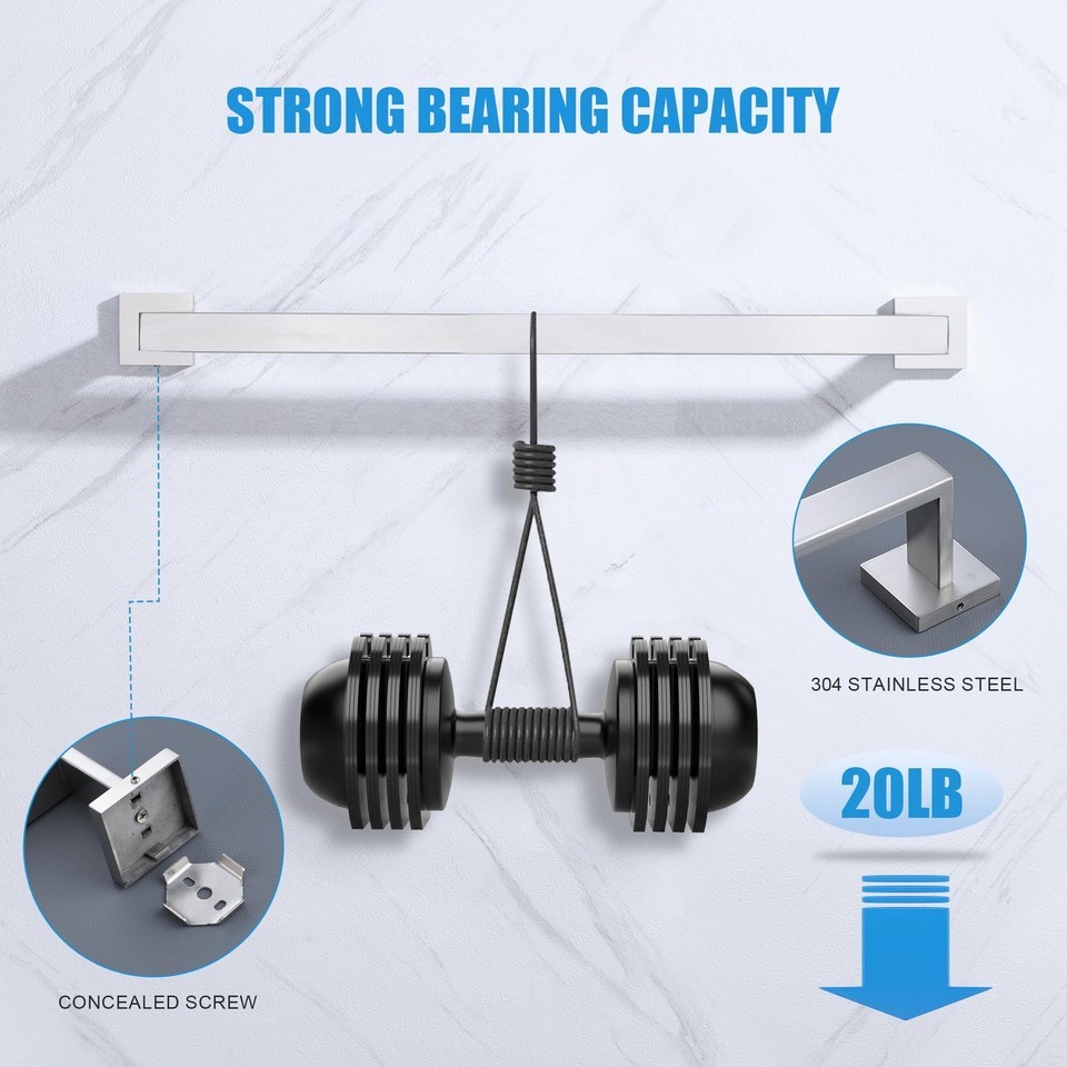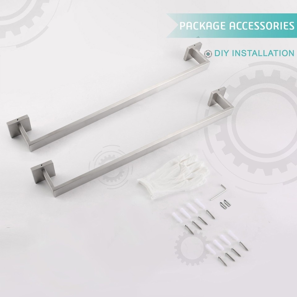 LANC 2PK 20" Brushed Nickel Bathroom Square Towel Bar Rack SUS304 Steel