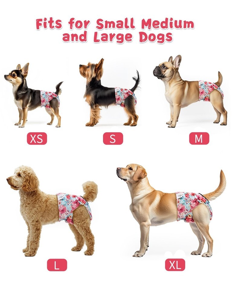 CuteBone Washable Reusable Female Dog Diapers 4-Pack for Heat, Training, Inconti