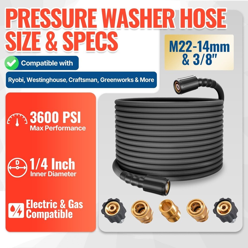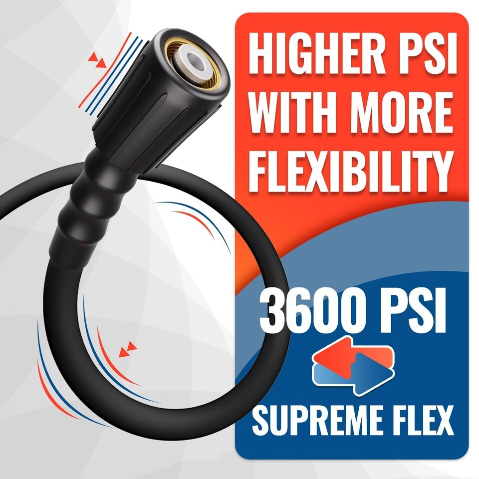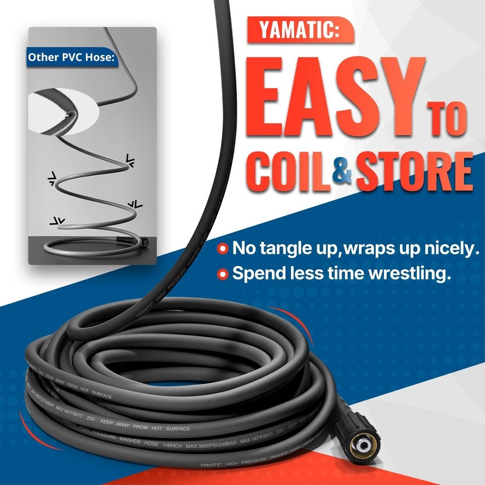 YAMATIC 25ft Pressure Washer Hose 3600 PSI Kink Resistant Heavy Duty Extension M