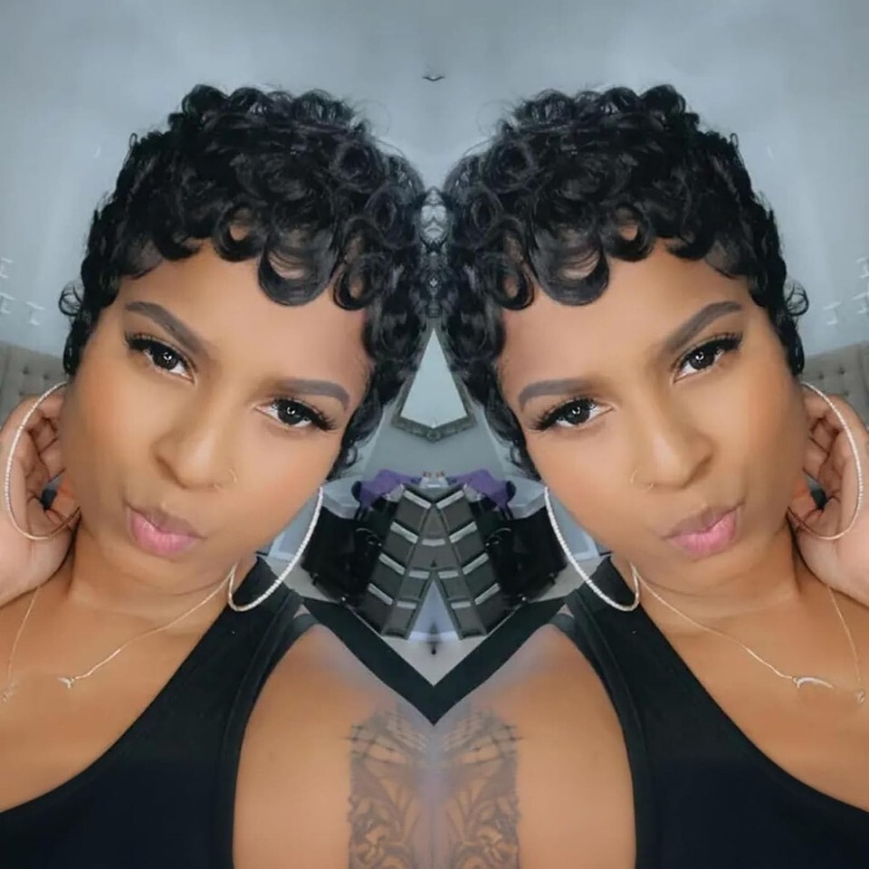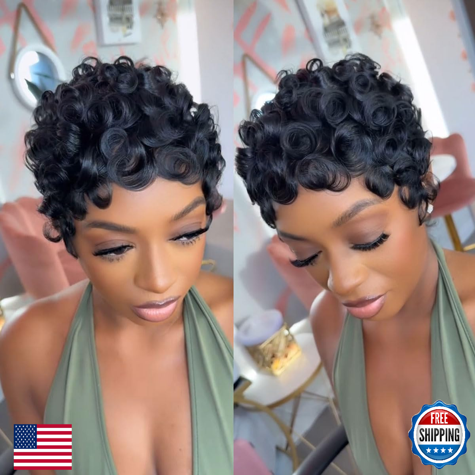VRZ Pixie Cut Wigs for Black Women Brazilian Curly Pixie Cut Wig Human Hair Glue