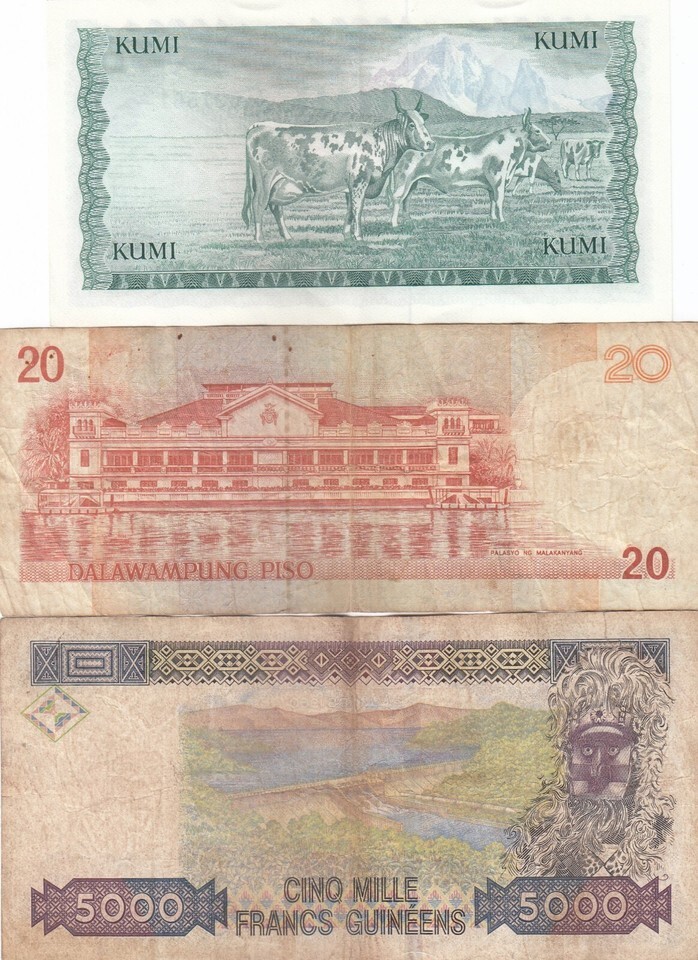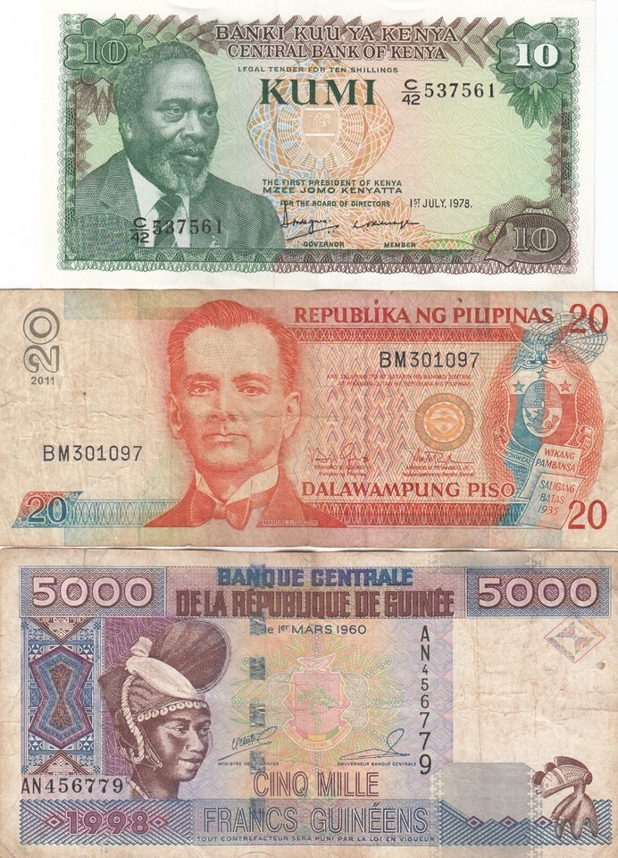 Kenya, Philippines, Guinea, Lot of 3 Different Banknotes, Old Issues