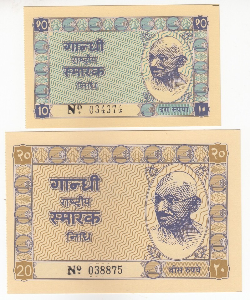 India, Gandhi Khadi Issue, Samrak Nidhi 50, 10 Rupees, 1950, Set of 2, UNC