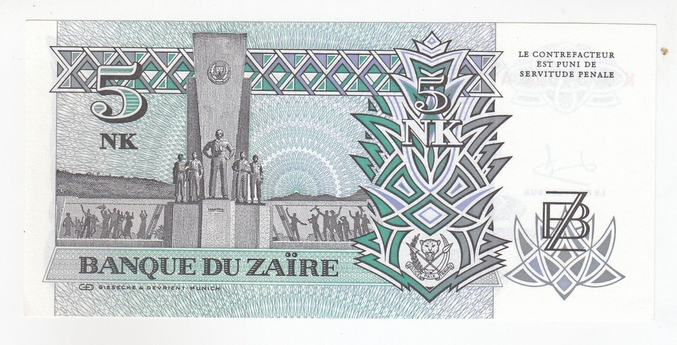 Zaire, 5 Makuta, 1993, P48, UNC and 50 similar items
