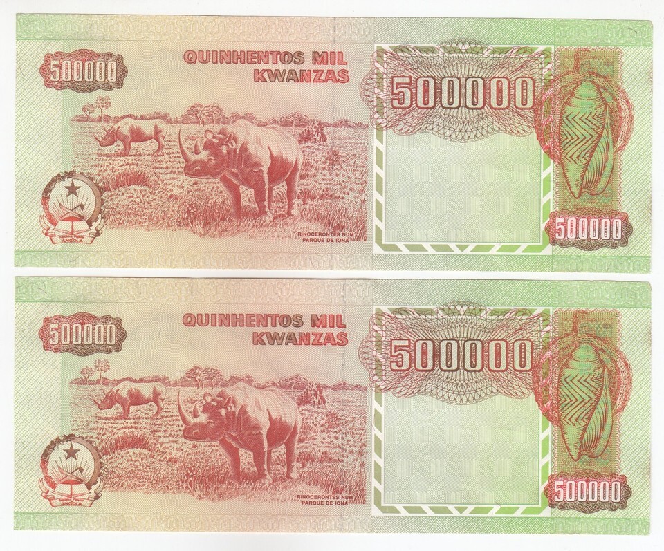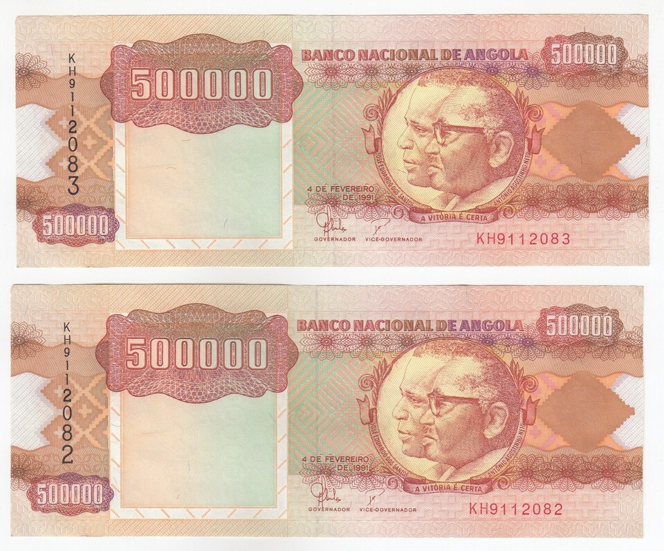 Angola, 500000 Kwanzas, 1991 Issue, (Set of 2) In Consecutive, AUNC, b1
