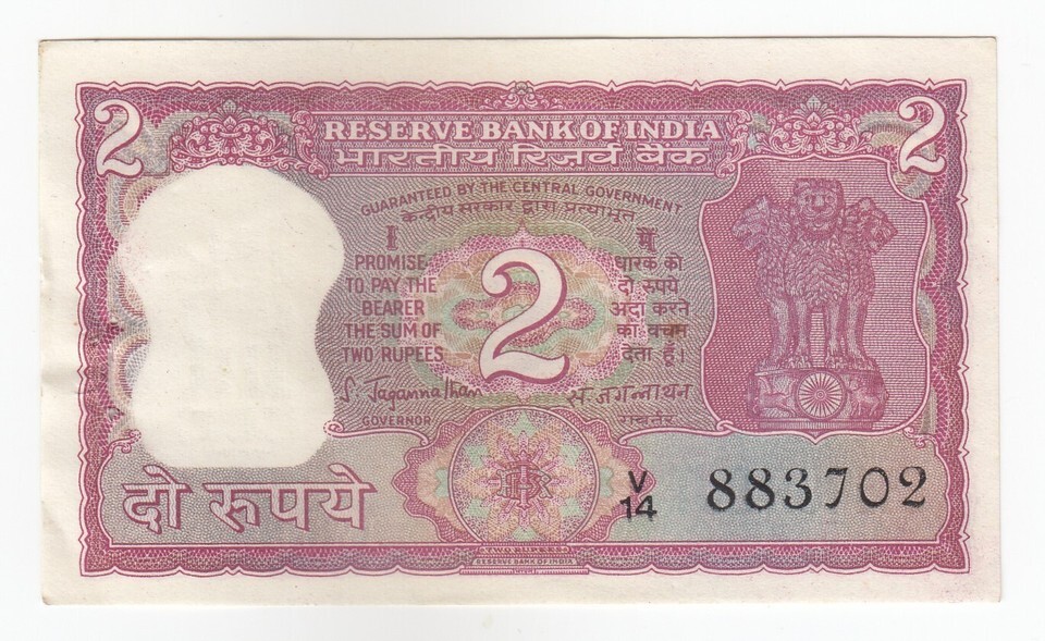 India, 2 Rupees Rare Signature, S. Jagannathan Sign. In UNC