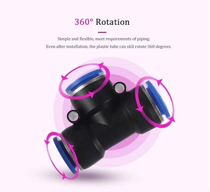 5 PCS, Push In Pneumatic Quick Connect Fittings, Equal Tee 8mm OD