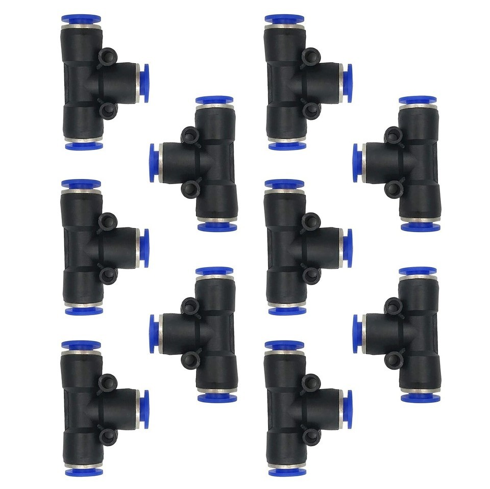 10 PCS, Push In Pneumatic Quick Connect Fittings, Equal Tee 6mm OD