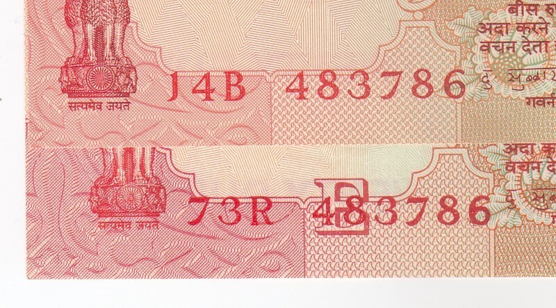 786 Ending Holy No. India, 20 Rs, Set of 2, ( Same Serial no: 483786 ), UNC