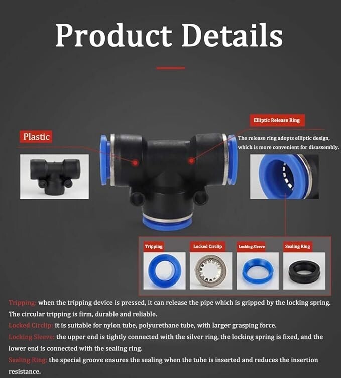 10 PCS, Push In Pneumatic Quick Connect Fittings, Equal Tee 6mm OD,