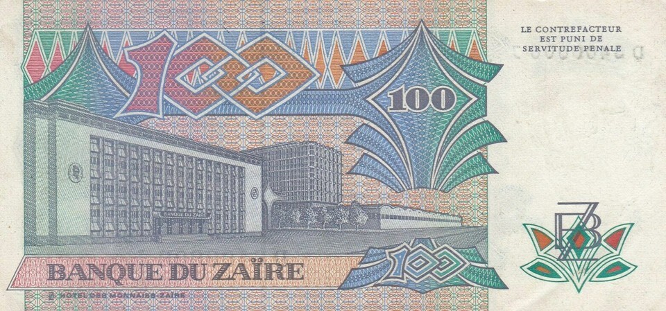 Zaire, 100 Zaires, Bank of Zaire Banknotes, and 50 similar items