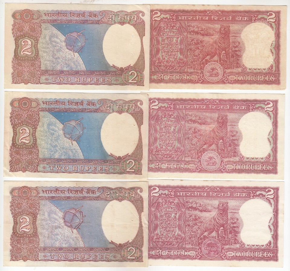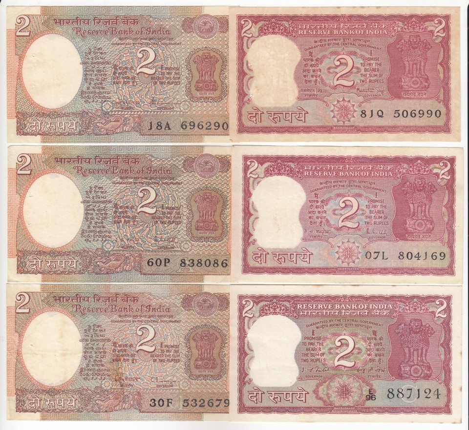 India, 2 Rupees Set 6, All Different Sign Old Issues Banknotes- show original...