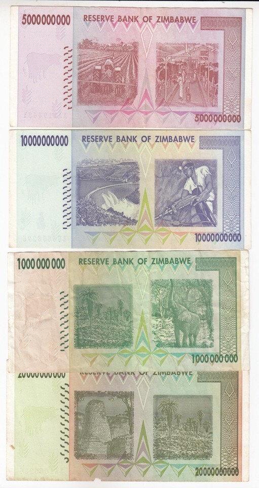 Zimbabwe, Lot Of 4, All Banknotes Of and similar items