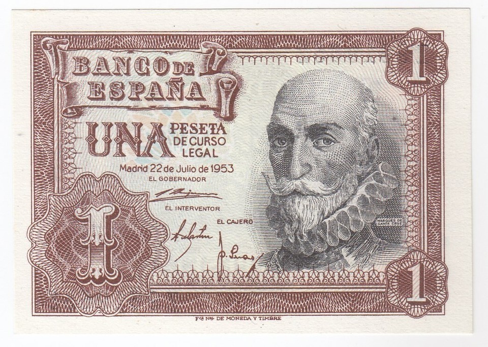 Spain, 1 Peseta, 1953, Bank of Spain, banknotes, P144,- show original title ...