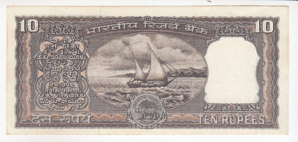 India, 10 Rupees, METALLIC Narsimhan Black Sign Boat Bank Issue, P60e, XF- sh...