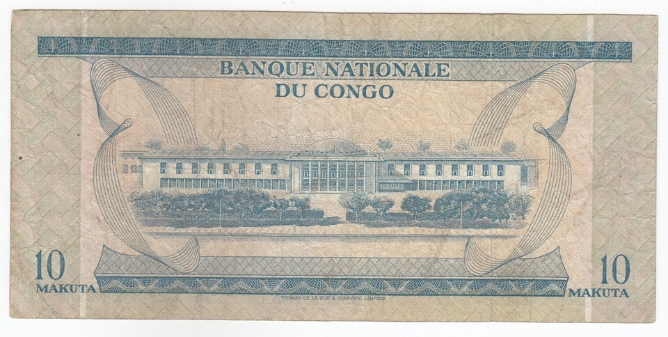 Congo Democratic. Rep. 10 Makuta Year, 1967-P9, V. Fine Rare- show original t...
