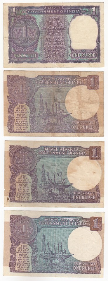 India, 1 Rupees Set of 4 All Different Sign Old Issues Banknotes- show origin...