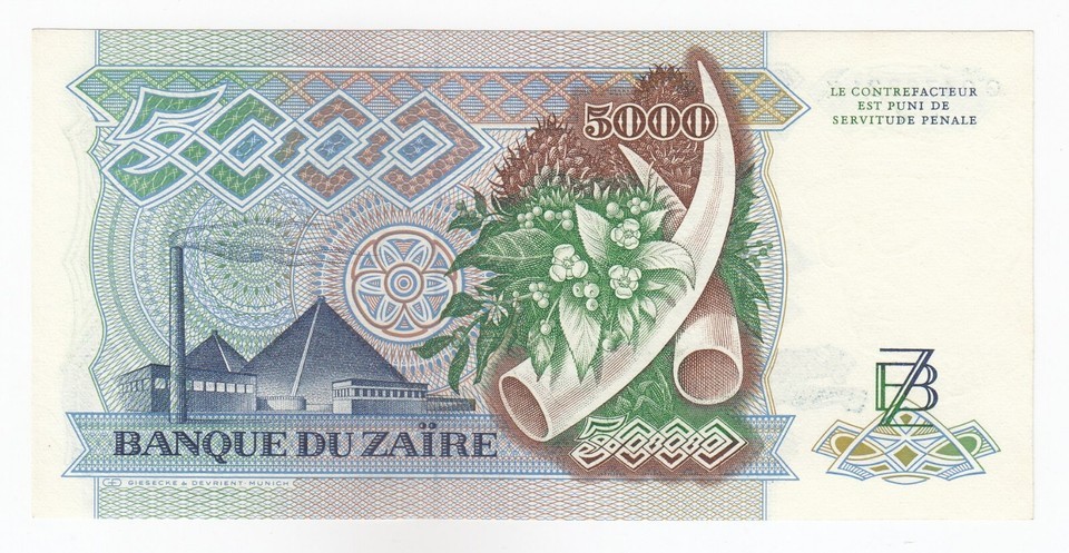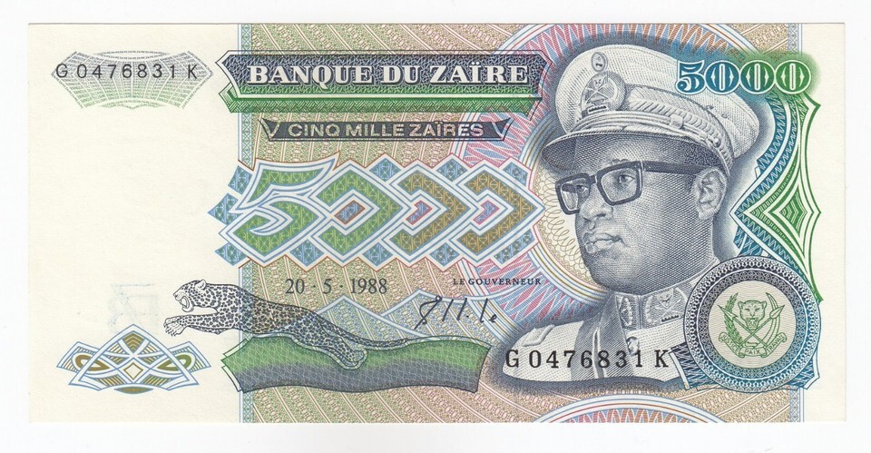 Zaire, 5,000 Zaires, Banque Du Zaire and similar items