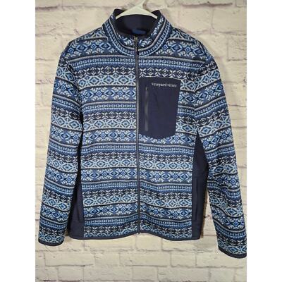 Vineyard Vines Fair Isle Full Zip Men's Fleece Jacket Size Small Blue